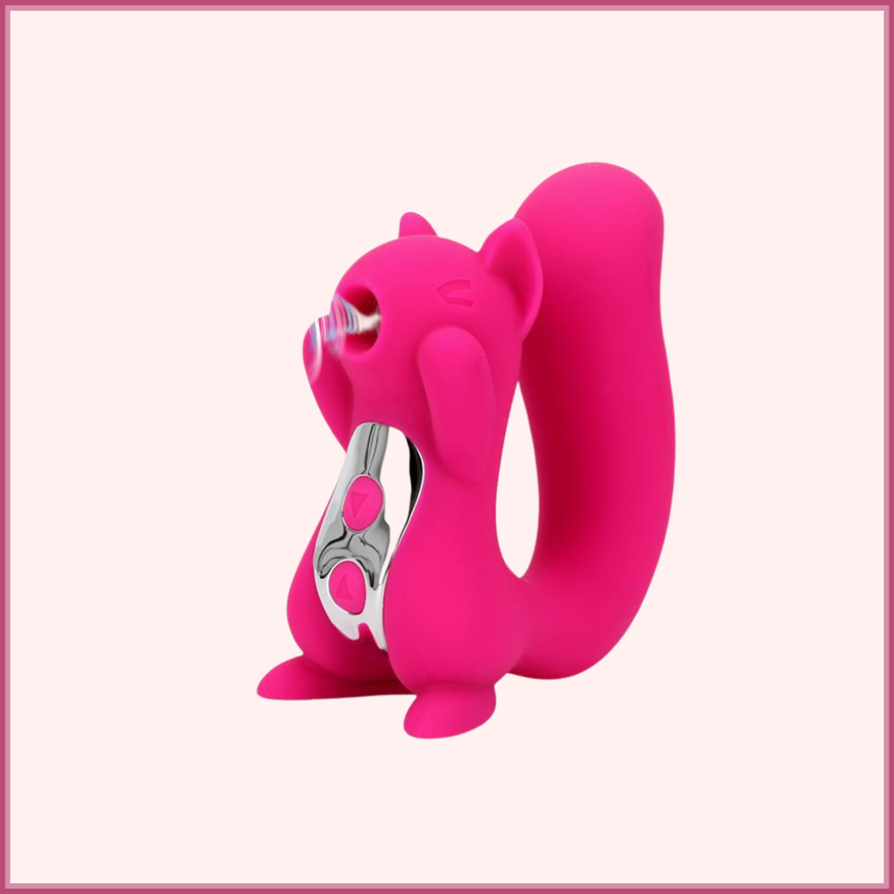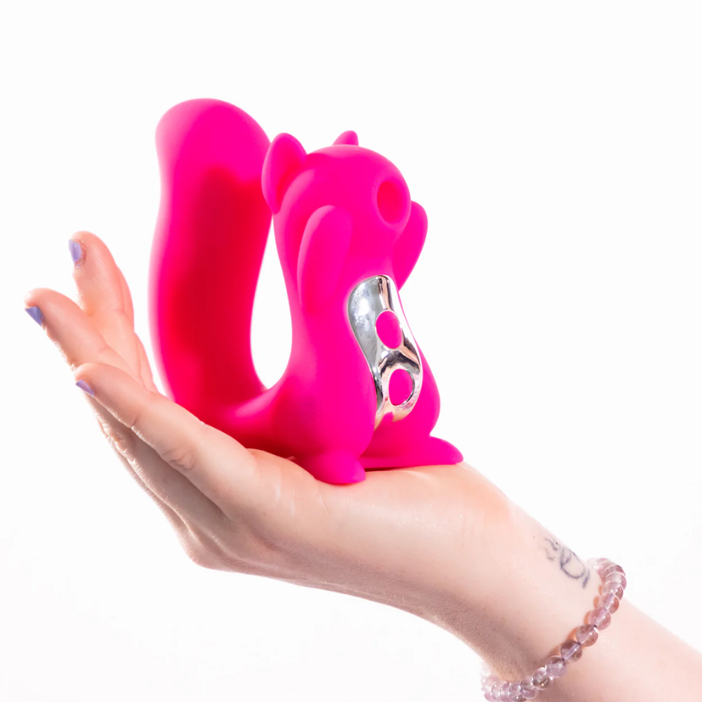 Unleash playful pleasure with this cute and playful multi-function toy that combines air pulse suction and deep vibrations for ultimate versatility. The squirrel’s mouth surrounds the clitoris or nipples with pulsing intensity, while its flexible tail curves perfectly to hit the G-spot or P-spot. With independently controlled motors and multiple modes, you can mix and match sensations to create endless combinations. Whether solo or with a partner, this uniquely designed toy brings powerful, body-shaking delight every time.